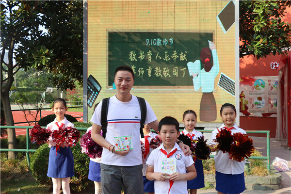 9月10日,金英小学举行“老师,我为您点赞”教师节庆祝活动。一踏进校园,老师们就收到了同学们递上来的“点赞卡”。一张张精致的卡片上,满满的“赞”映入眼帘,原来是金英少年们用一个个彩色的指印,为老师们献上的感谢与祝福。老师们手握点赞卡,纷纷合影留念,用美美的心情开启美好的一天。