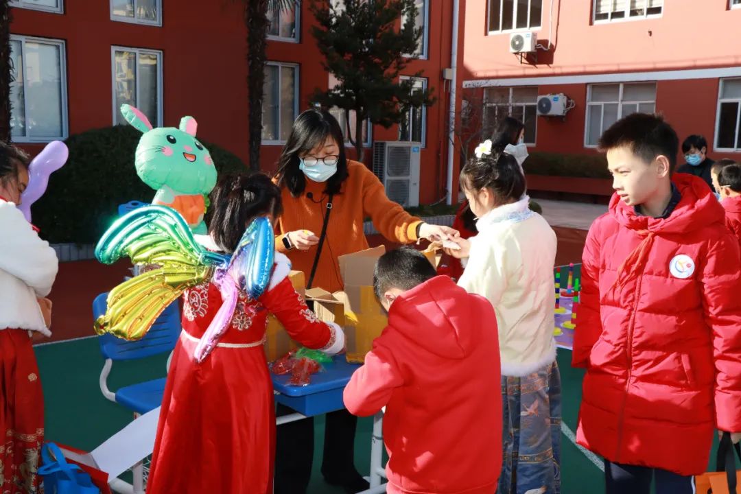 在2024年的最后一天,金英小学的操场上热闹非凡,沐浴着暖阳,洋溢着祥和与爱意,一年一度的迎新义卖活动正如火如荼地进行着,师生们欢聚一堂,用快乐迎接2025年的到来。