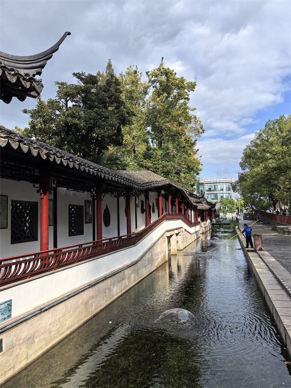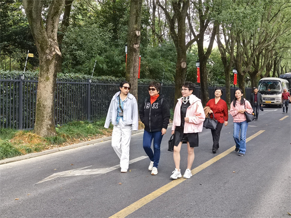 午后的曲水园更添雅致意趣。作为上海五大古典园林之一,秋日的园林叠翠流金,亭台楼阁倒映在碧波之中,桂花香气沁人心脾。老同志们或沿九曲桥漫步,或在湖心亭小憩,畅谈学校的发展变化与退休后的生活点滴。