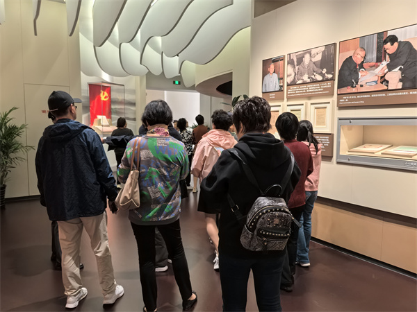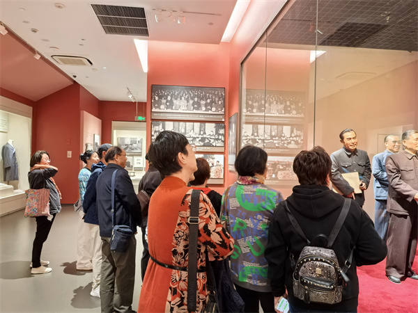 随后,大家前往坐落于古镇的陈云纪念馆。作为全国唯一系统展示陈云生平业绩的国家一级博物馆,这里通过200余件文献资料、近400张历史图片及沉浸式场景还原,全方位展现了伟人的光辉一生。在虚拟成像技术呈现的工作场景前,在“共产党员的六条标准”展示区,老教师们认真参观,不时驻足沉思,深切感悟伟人的崇高风范与家国情怀,接受了深刻的红色教育洗礼。